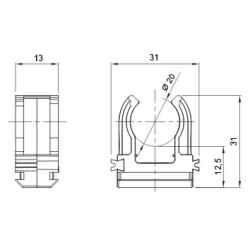 SUPPORT À CLIPS EN POLYMÈRE ANTICHOC - Ø 20mm